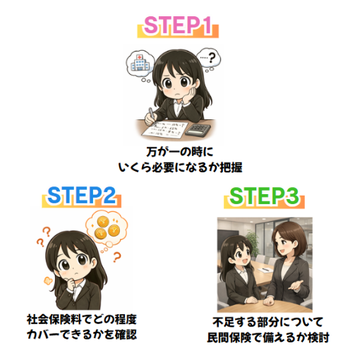 まずは、自分が抱えているリスクを整理し、社会保険でどこまでカバーできるのかを確認することが大切です。